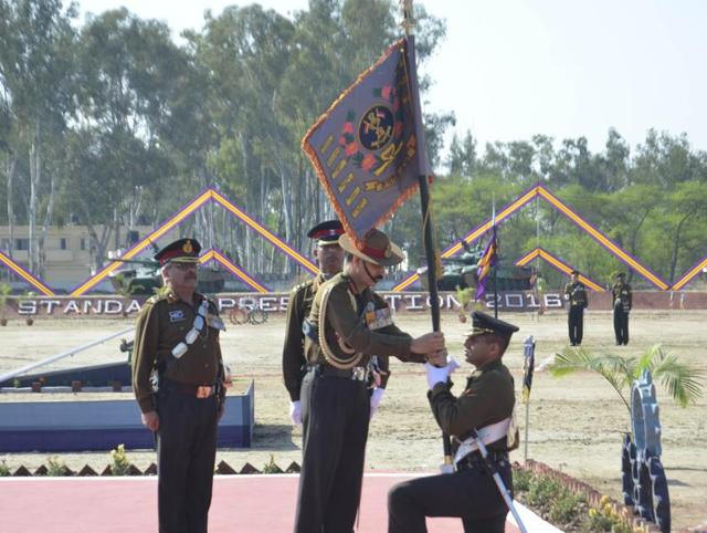 Chief of Army Staff Gen Dalbir Singh presenting the President’s Standard to 18 Cavalry at the Amritsar military station in 2016.