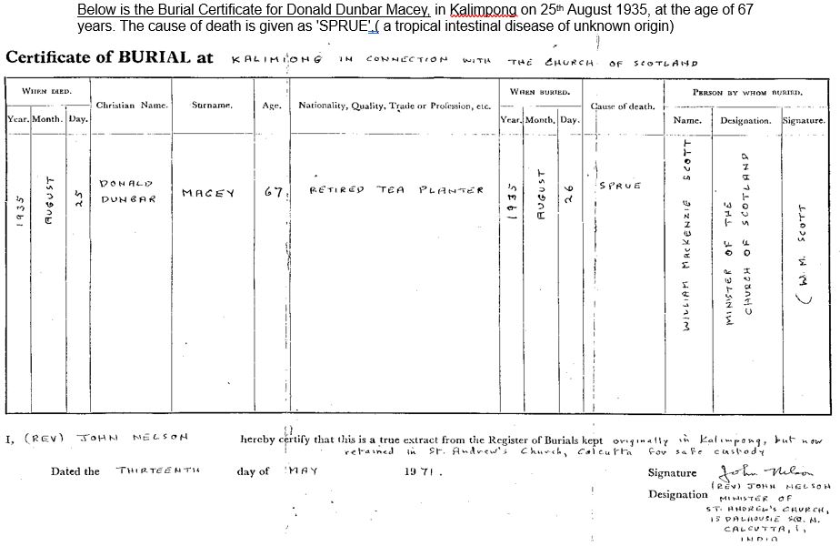 1935 Donald Dunbar Macey b 1868 d 25 Aug 1935 Kalimpong
