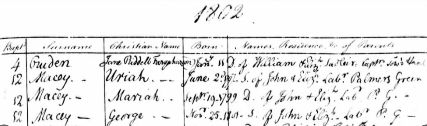 1802 William Macey b 1802 d 31/5/1819